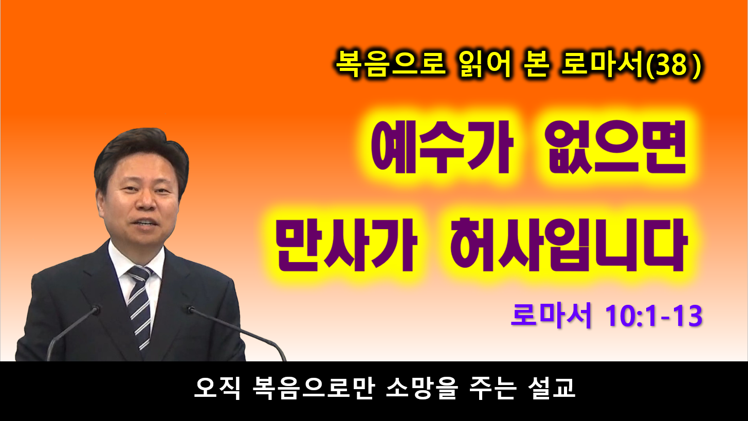 [성경본문] 로마서10:1-13절 개역개정1. 형제들아 내 마음에 원하는 바와 하나님께 구하는 바는 이스라엘을 위함이니 곧 그들로 구원을 받게 함이라 2. 내가 증언하노니 그들이 하나님께 열심이 있으나 올바른 지식을 따른 것이 아니니라 3. 하나님의 의를 모르고 자기 의를 세우려고 힘써 하나님의 의에 복종하지 아니하였느니라 4. 그리스도는 모든 믿는 자에게 의를 이루기 위하여 율법의 마침이 되시니라 5. 모세가 기록하되 율법으로 말미암는 의를 행하는 사람은 그 의로 살리라 하였거니와 6. 믿음으로 말미암는 의는 이같이 말하되 네 마음에 누가 하늘에 올라가겠느냐 하지 말라 하니 올라가겠느냐 함은 그리스도를 모셔 내리려는 것이요 7. 혹은 누가 무저갱에 내려가겠느냐 하지 말라 하니 내려가겠느냐 함은 그리스도를 죽은 자 가운데서 모셔 올리려는 것이라 8. 그러면 무엇을 말하느냐 말씀이 네게 가까워 네 입에 있으며 네 마음에 있다 하였으니 곧 우리가 전파하는 믿음의 말씀이라 9. 네가 만일 네 입으로 예수를 주로 시인하며 또 하나님께서 그를 죽은 자 가운데서 살리신 것을 네 마음에 믿으면 구원을 받으리라 10. 사람이 마음으로 믿어 의에 이르고 입으로 시인하여 구원에 이르느니라 11. 성경에 이르되 누구든지 그를 믿는 자는 부끄러움을 당하지 아니하리라 하니 12. 유대인이나 헬라인이나 차별이 없음이라 한 분이신 주께서 모든 사람의 주가 되사 그를 부르는 모든 사람에게 부요하시도다 13. 누구든지 주의 이름을 부르는 자는 구원을 받으리라
