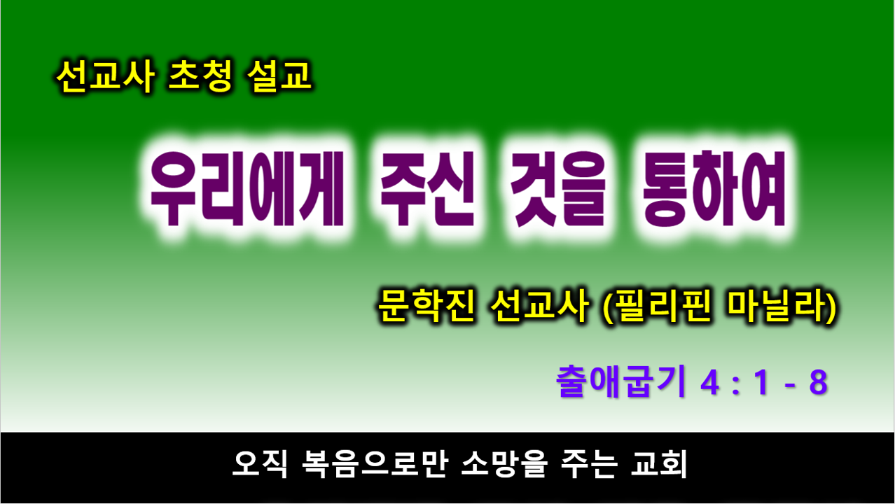 [성경본문] 출애굽기4:1-8절 개역개정1. 모세가 대답하여 이르되 그러나 그들이 나를 믿지 아니하며 내 말을 듣지 아니하고 이르기를 여호와께서 네게 나타나지 아니하셨 2. 여호와께서 그에게 이르시되 네 손에 있는 것이 무엇이냐 그가 이르되 지팡이니이다 3. 여호와께서 이르시되 그것을 땅에 던지라 하시매 곧 땅에 던지니 그것이 뱀이 된지라 모세가 뱀 앞에서 피하매 4. 여호와께서 모세에게 이르시되 네 손을 내밀어 그 꼬리를 잡으라 그가 손을 내밀어 그것을 잡으니 그의 손에서 지팡이가 된지라 5. 이는 그들에게 그들의 조상의 하나님 곧 아브라함의 하나님, 이삭의 하나님, 야곱의 하나님 여호와가 네게 나타난 줄을 믿게 하려 함이라 하시고 6. 여호와께서 또 그에게 이르시되 네 손을 품에 넣으라 하시매 그가 손을 품에 넣었다가 내어보니 그의 손에 나병이 생겨 눈 같이 된지라 7. 이르시되 네 손을 다시 품에 넣으라 하시매 그가 다시 손을 품에 넣었다가 내어보니 그의 손이 본래의 살로 되돌아왔더라 8. 여호와께서 이르시되 만일 그들이 너를 믿지 아니하며 그 처음 표적의 표징을 받지 아니하여도 나중 표적의 표징은 믿으리라