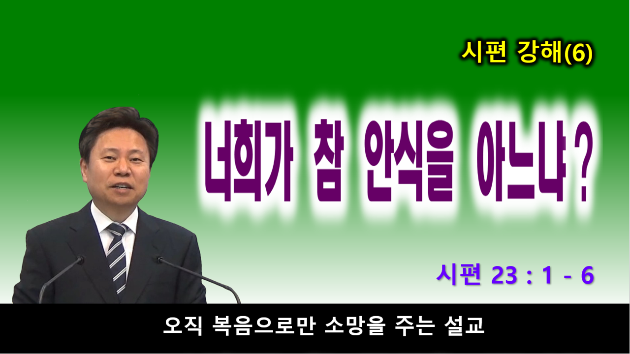 [성경본문] 시편23:1-6절 개역개정1. 여호와는 나의 목자시니 내게 부족함이 없으리로다 2. 그가 나를 푸른 풀밭에 누이시며 쉴 만한 물 가로 인도하시는도다 3. 내 영혼을 소생시키시고 자기 이름을 위하여 의의 길로 인도하시는도다 4. 내가 사망의 음침한 골짜기로 다닐지라도 해를 두려워하지 않을 것은 주께서 나와 함께 하심이라 주의 지팡이와 막대기가 나를 안위하시나이다 5. 주께서 내 원수의 목전에서 내게 상을 차려 주시고 기름을 내 머리에 부으셨으니 내 잔이 넘치나이다 6. 내 평생에 선하심과 인자하심이 반드시 나를 따르리니 내가 여호와의 집에 영원히 살리로다